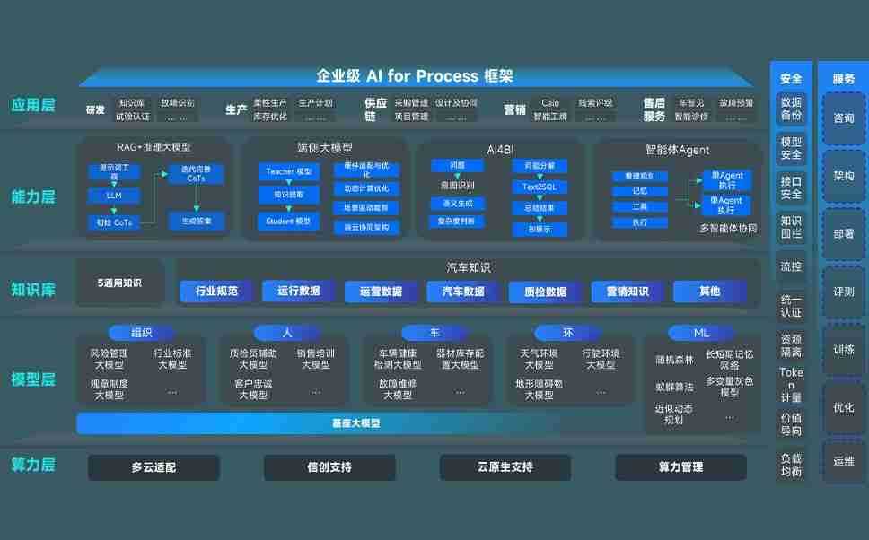 AG尊龙凯时问学智车解决方案是一套基于AI技术的汽车行业智能化系统,,覆盖从底层算力到顶层AI应用的全栈方案。。。方案由算力层、、、、模型层和应用层组成:算力层,,,方案支持多种一体机配置,,,,具备云端灵活部署、、多云适配以及动态优化计算资源的能力;模型层,,AG尊龙凯时问学平台版提供了企业级AI应用一站式构建与管理平台,,支持基于后训练强化技术的汽车企业专属模型的训练、、、评测和运营;应用层,,,AG尊龙凯时问学DeepSeek版提供包括超级员工、、、、智能招采、、智能营销、、、、智能客服、、、、AI for BI等一系列解决方案,,,,可助力汽车行业实现数字化转型,,,,让管理更智能、、响应更敏捷。。。。